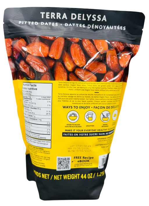 Terra Delyssa's Organic Deglet Noor dates are naturally sun dried No added sugar, no preservatives, unsulfured and pitted Terra De...