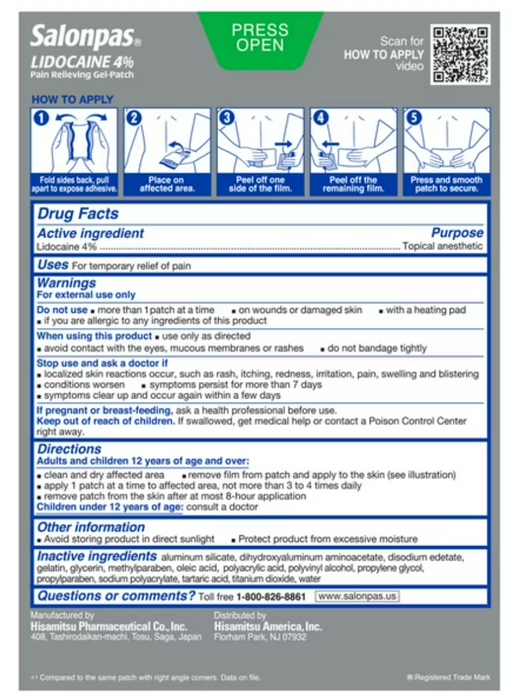 Original price $19.99 - Original price $19.99Original price$19.99$19.99 - $19.99Current price $19.99Salonpas OTC Relief Patches LIDOCAINE 4% – 15ct Cooling Comfort