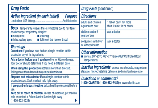 Product Details Over-the-counter tablets with loratadine 10 mg Non-drowsy formulation when taken as directed Intended for once-daily use as l...