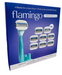 Flamingo 9ct Shave Kit – Razor Handle, 9 Cartridges & Shower Holder – 4-Blade Moisture Plus with Aloe